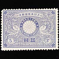 日本最初の記念切手。明治天皇と美子皇后の婚儀25年(銀婚)を記念。