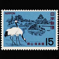 | 意 匠 | 後楽園に鶴を配し、再建なった岡山城を描く |
