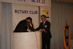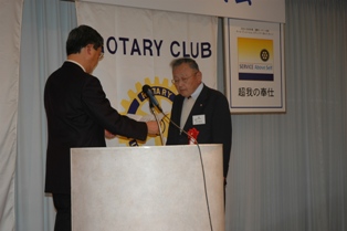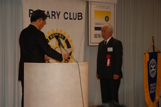 | 感謝状贈呈徳山東RC | 感謝状贈呈 特別代表原田氏 |