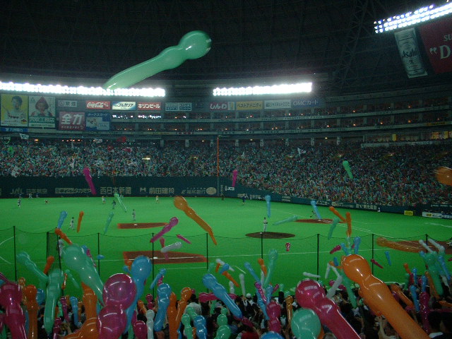 2.ペナント競うグランドに 闘魂燃えて敵を打つ 一投一打火をはきて 白球熱き嵐呼ぶ(ソレ!) いざゆけ 無敵の若鷹軍団 いざゆけ 炎の若鷹軍団 我らの 我らのダイエーホークス