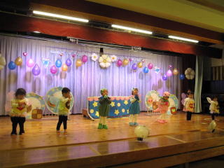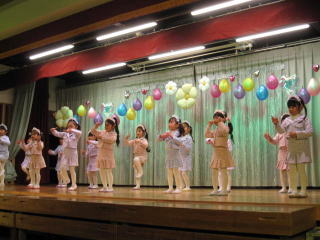 お遊戯会は、子ども達が普段の練習の成果を思う存分に発揮できました。練習では、なかなか揃わなかったダンスや合奏も、日を追うごとに上達し、子ども達の成長を担任を始め補助教員も感じることができました。保護者の皆様も、お子様の演技に感動し、胸が熱くなる場面があったことと思います。とても素敵なお遊戯会でした。 |
