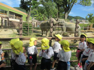 子ども達が、とても楽しみにしていた動物園。大きな象やカバ、怖いライオンやトラなどしっかりと見てきました。また、動物への餌やりと、ふれ合い体験もして大満足でした。お昼のおにぎり弁当が美味しかったです。 |