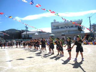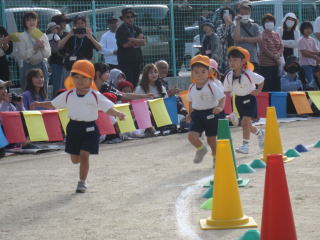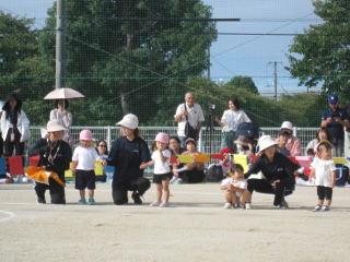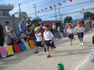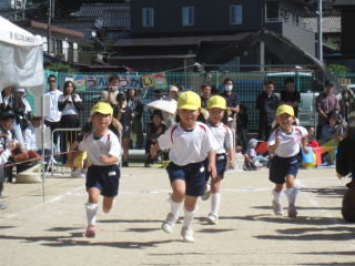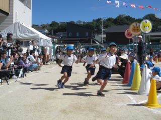 秋風が吹き、少し涼しさを感じる中で、多くのお家の方に見守られながら運動会が行われました。これまでの練習の成果が発揮され、子ども達の元気のよい、少し成長した姿をお見せできました。 |