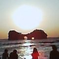 | 4月2日 | ・・・ | ・・・ | 午前10時チェックアウト、孫に送ってやるスイカを求めてあちこち探す(困ったもんです・・・ばあばあー西瓜送ってと孫の一声で)。午後、三段壁、円月島の夕日を見学・・・・日本一の夕日といわれている円月島では4時より16時16分(その間夕食)まで多くの見学者と一緒に時を過ごす。いい休養日であった、ありがたいありがたい | 日本一の夕日![]() |