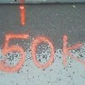 真は左より「サロマ湖マラソンの50k表示」「吠えつかれた犬の家」「見ていた草刈車」