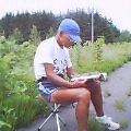 7月15日 浜益〜厚田村 38・0 6時40分Run開始・・・今日も前半はトンネル様が待ち受ける、10キロで 2.2キロの送毛トンネル(回避)、26キロで大島内トンネル(幅員5メートル、歩道無し、「壁接触注意」の看板があり真っ暗、2,4キロをくぐると50メートルおいて2キロ(回避、車で抜ける)・・・10時40分少し早いが望来川の麓で昼食、近所のおばさんから「きゅうり」の差し入れ・・・札幌が近いからかテレビがよく映る。