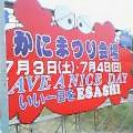 7月4日 枝幸〜枝幸 32.0 6時50分昨日Runを中止したコースへ戻ってRun開始、今日は昨日以上に寒い(体感温度7℃?)、長袖に、手袋のいでたちでも汗も出ない、泊った道の駅を通過・・・更に5キロ進むと「枝幸かにまつり」の看板,、右下に枝幸の町並み・・・妻があとを追ってここを通過するであろうことを思うと【昨夕、行きたそうな顔をしていた】やや心が痛むが心を鬼にして進む・・・2回も休憩点で合流しても何も言わない・・・9時過ぎ、北オホーツクトンネルを目前に、このことを思うと目頭が熱くなり、目が霞む・・・急遽Run中止、車を呼んで蟹祭り会場へ・・・会場では約1万人近くの人だかりの中、蟹にまつわるいろいろなイベント・・・中でも札幌で見損なった、「枝幸よさこいソーラン踊り」(枝幸町の出し物で、観客も参加できる)では率先して輪に入って踊る妻を目にし、また又ж・・・・