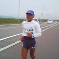 6時50分Run開始、薄っすらと雲がかかり肌寒い・・・24キロまで左に牧場、右に時々オホーツク海の入り江が見える・・・紋別の市街を前方に、左に何か近代的な建物が突如現れる・・見ると「紋別空港」・・100メートル寄り道し携帯で記念撮影、・・さらに進み久々に大きな街、紋別市(人口3.7万)、ここで瀬古監督のサインにフイルムをかける為イエローハットへ立ち寄る。・・・